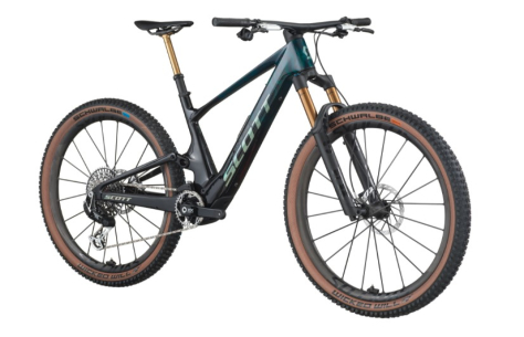 Rear Shock: FOX NUDE 6T Factory EVOL Trunnion, SCOTT custom w. travel & geo adj., 3 modes, Low Speed Adj., Kashima, Reb. Adj., 130-90-Lockout, T165X45mm