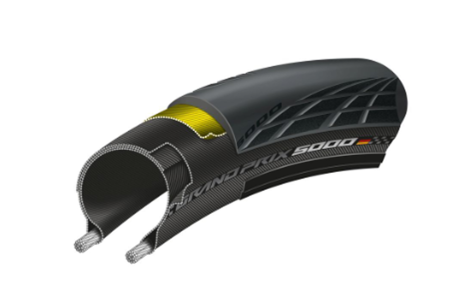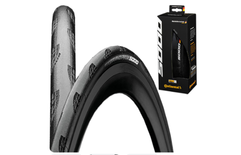 Pneu Grand Prix 5000 de alto desempenho, com excelente equilíbrio entre velocidade, durabilidade e proteção.