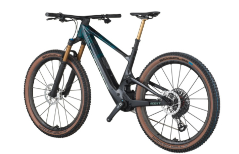 Rear Shock: FOX NUDE 6T Factory EVOL Trunnion, SCOTT custom w. travel & geo adj., 3 modes, Low Speed Adj., Kashima, Reb. Adj., 130-90-Lockout, T165X45mm